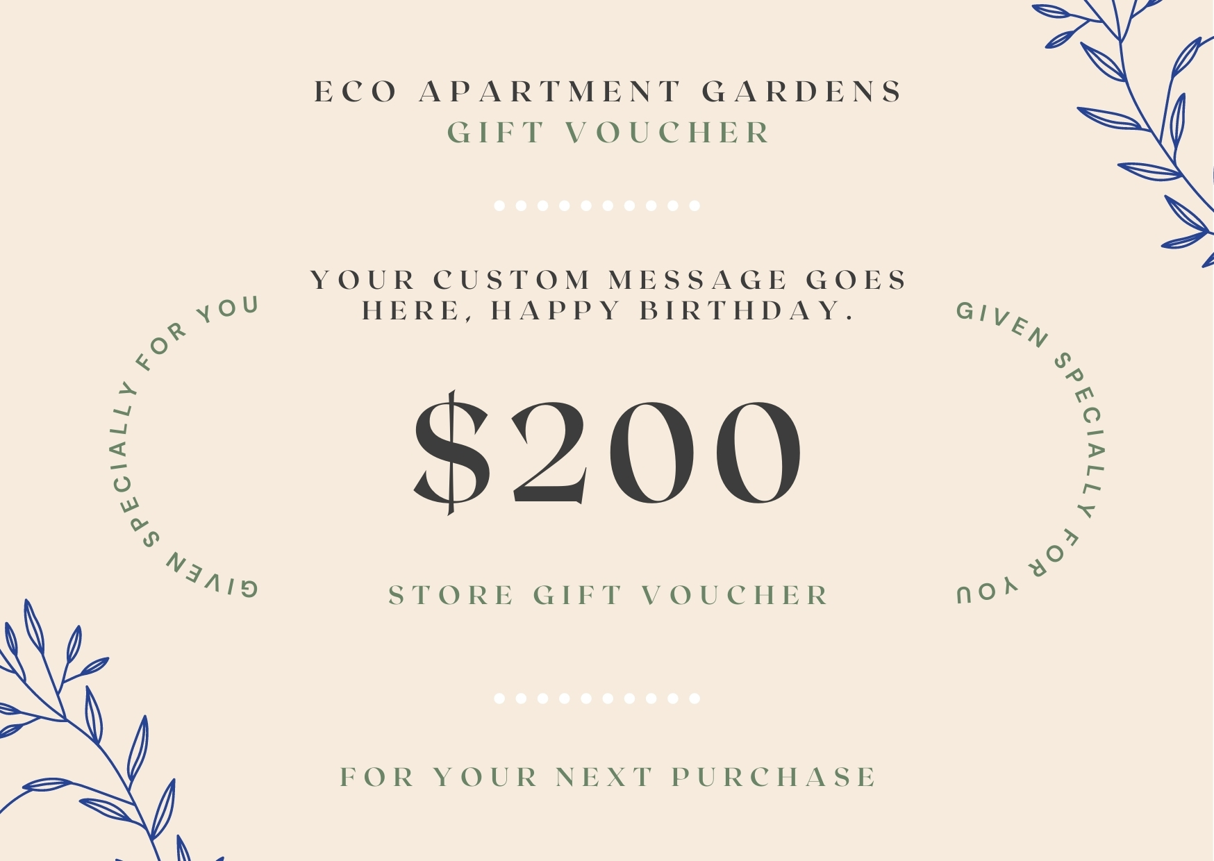 GIFT SOMEONE A ECO APARTMENT GARDENS VOUCHER.